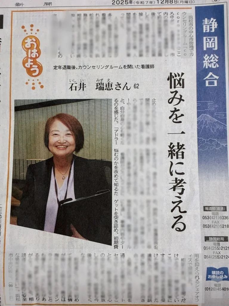 現在はカウンセリングや講座を通して、病気・仕事・人間関係・家族・喪失など、さまざまな悩みに寄り添っています。